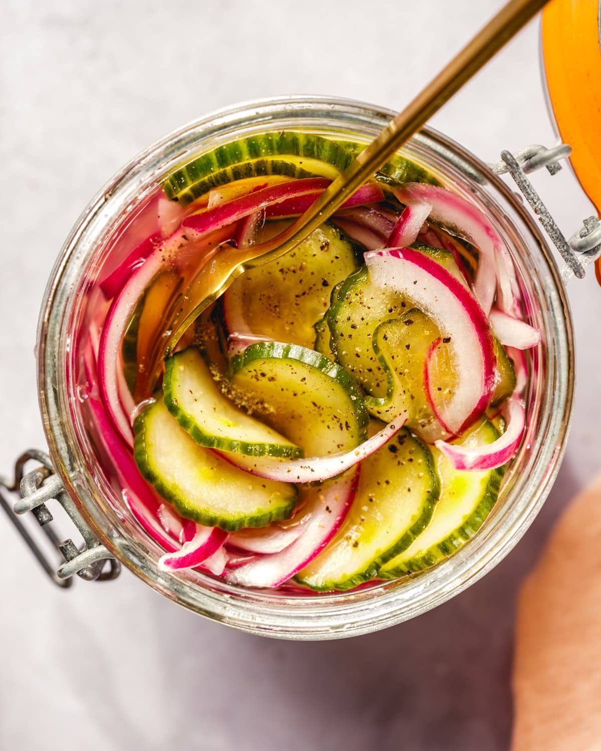 يستغرق مخلل الخيار والبصل السريع 5 دقائق فقط في الوقت المحدد، لذلك ليس من الصعب توفير الوقت لتحضير المرطبان.