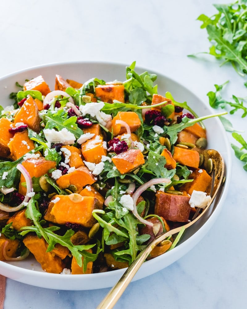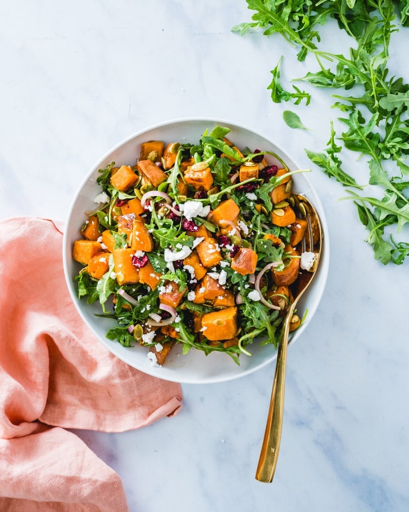 إليكم إحدى السلطات الخريفية المفضلة لدي: سلطة البطاطا الحلوة! لقد ابتكرت العشرات من وصفات السلطة على مر السنين، وهذه الوصفة من بين أفضل 10 أطباق جانبية صحية.